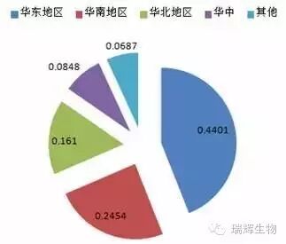 医疗器械企业大多集中在华东、华南和华北地区,44%的企业集中在华东地区